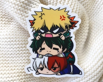 Deluxe My Hero Academia Todoroki jacket including jacket hoodie pants and cap. Boku no hero academia - the big three action shots Sticker by mykyaa. Todoroki jacket for sale now and still in stock.
